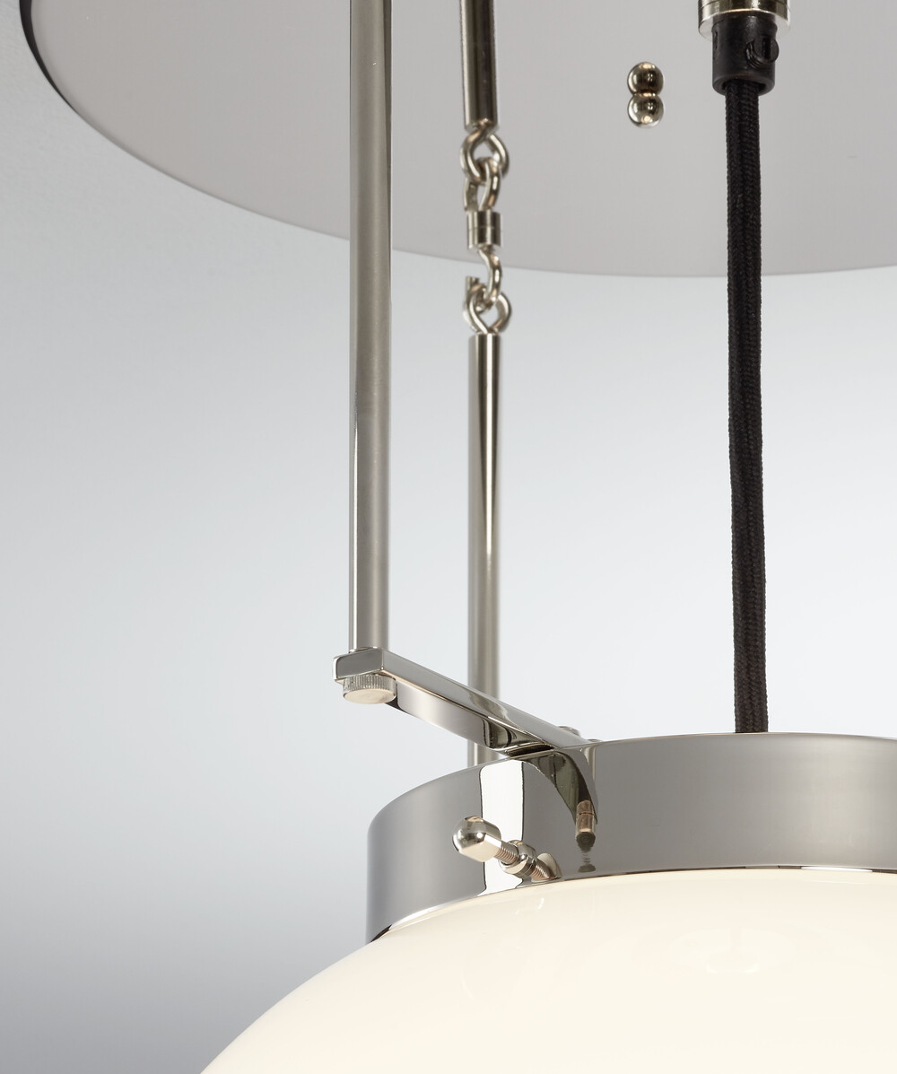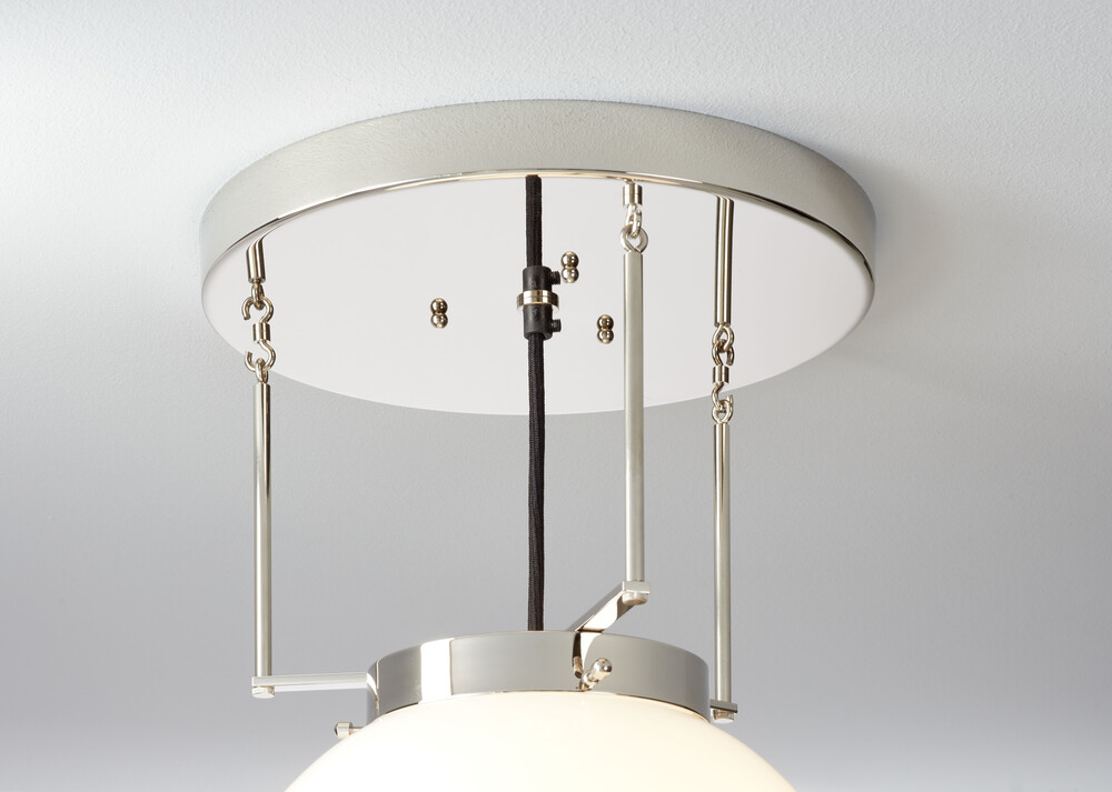 유리 글로브는 다양한 크기로 선택 가능합니다. 바 및 캐노피는 니켈 마감 또는 황동 마감으로 선택 가능합니다. 바와 캐노피의 디테일이 있는 제품으로 다른 Marianne Brandt의 제품과 같이 디테일이 좋은 제품입니다.