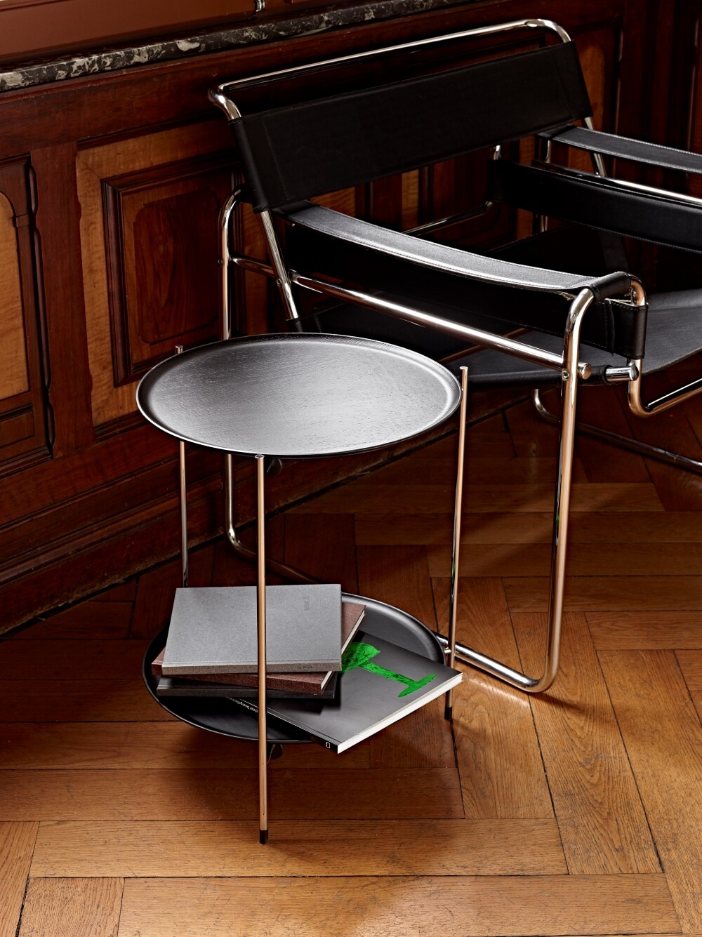 설명이 필요 없는 유명한 독일 건축가인 Egon Eiermann의 1961년 디자인 사이드테이블입니다. 심플하면서도 가벼운 테이블로 이동이 용이하며 가벼운 우드 선반과 가볍지만 단단한 크롬감의 스틸 다리로 구성되어있습니다. 어디에서나 잘 어울리는 디자인으로 1개의 선반 또는 2개의 선반을 선택 주문할 수 있습니다.