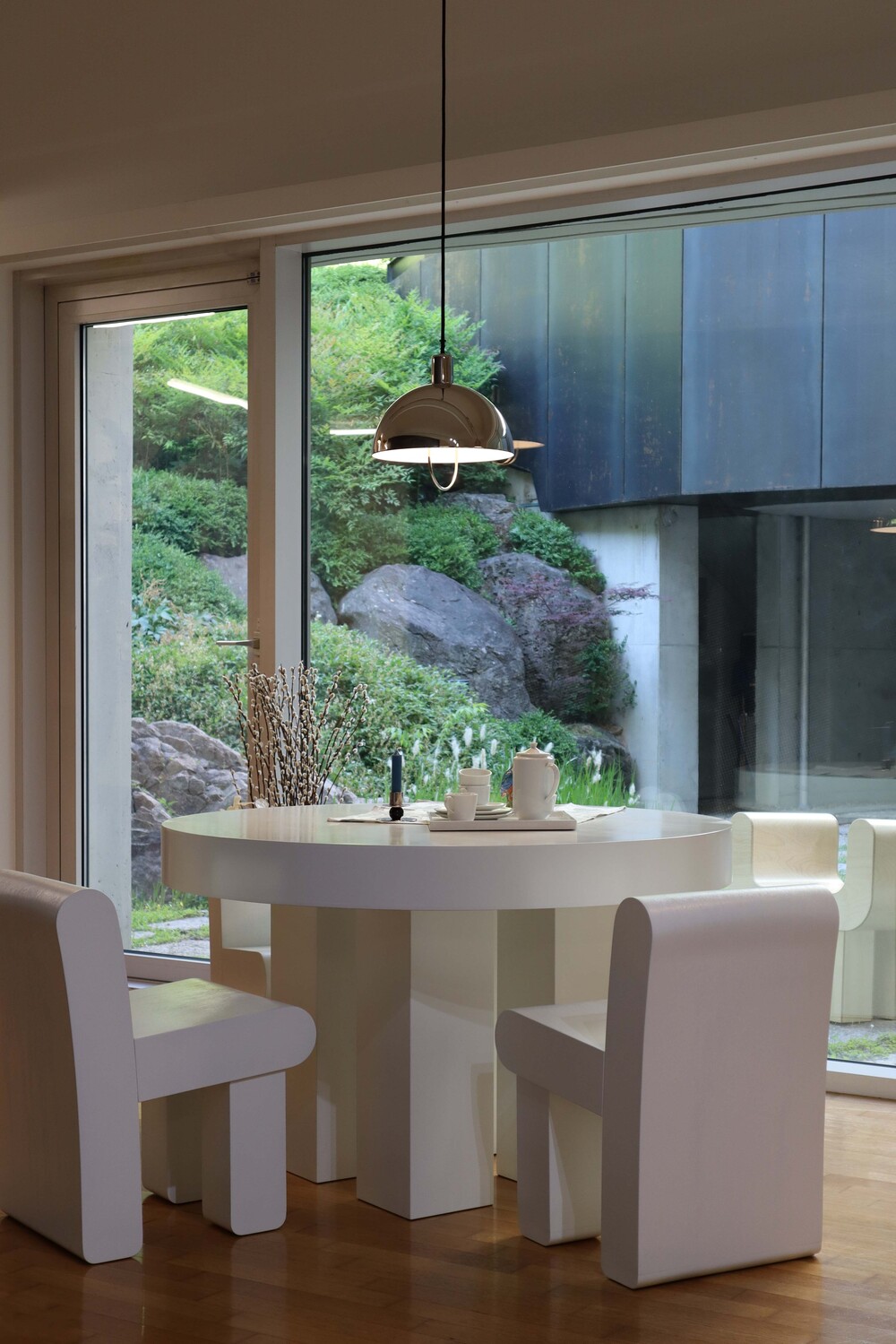 PLUMP CHAIR 의 다리와 시트, 등받이는 PLUMP 시리즈 특유의 곡선으로 디자인되었으며, 각도가 있는 등받이로 앉았을때의 보다 나은 감도를 제공합니다.