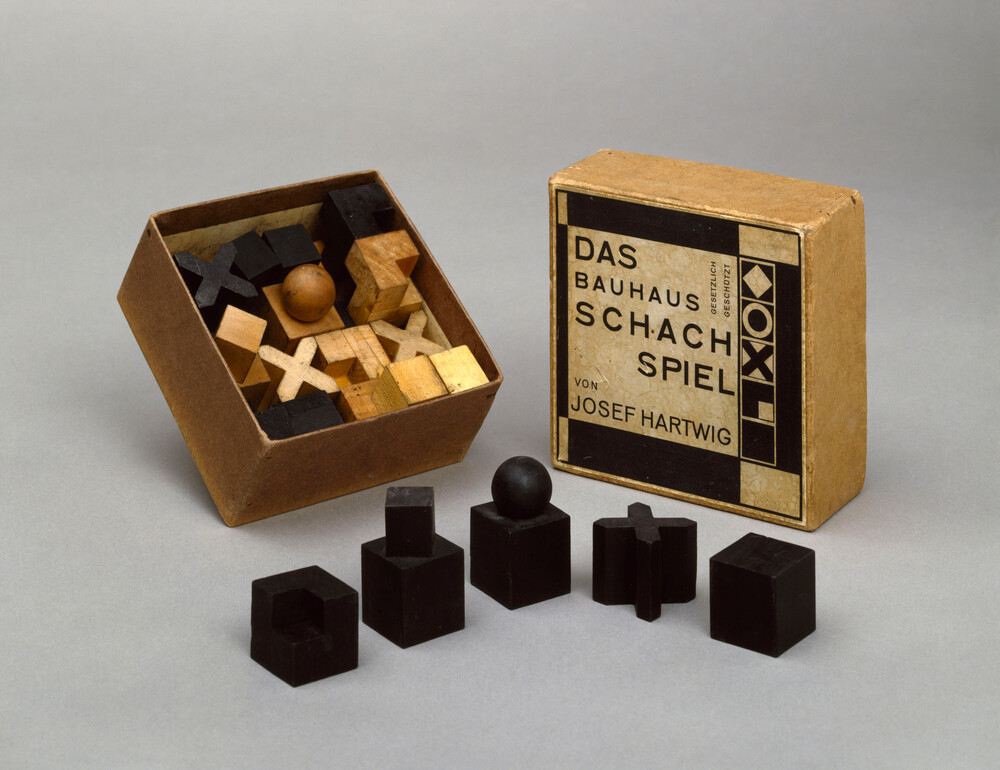 1923년 Josef Hartwig의 체스맨은 일반적으로 사용되는 것과 다르게 각 조각의 기능과 형태에 순수한 기반을 둔 상징적인 형태의 축소된 모습을 보여줍니다.