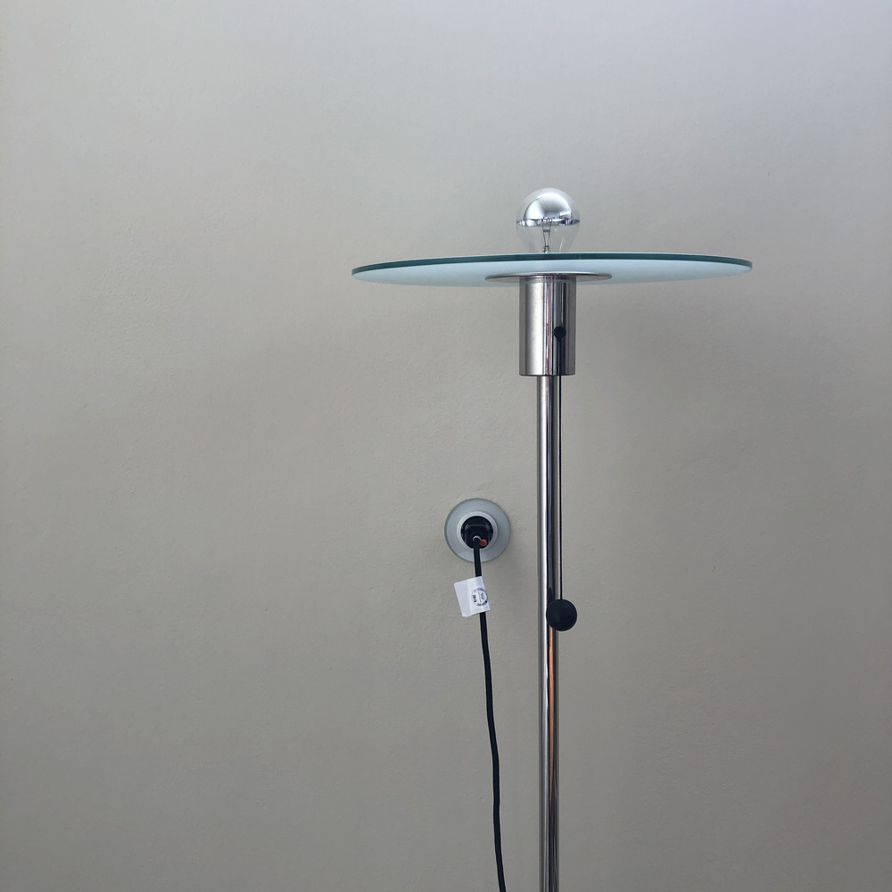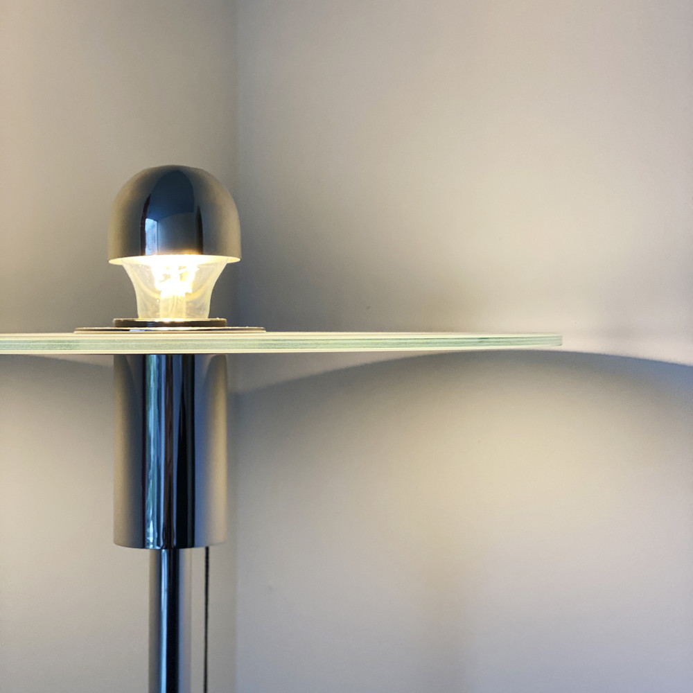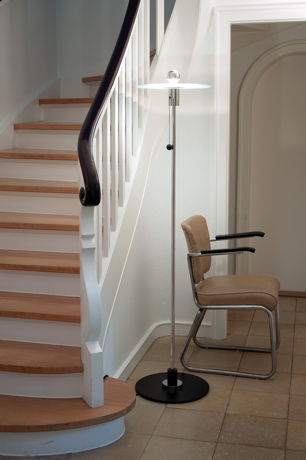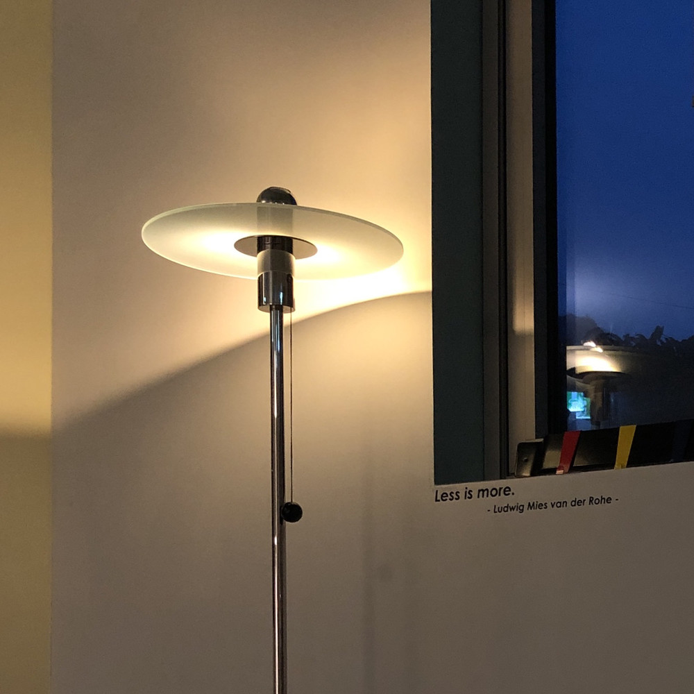 역사적인 가치와 디자인적 가치가 높은 제품으로 불을 껐을때도 니켈마감과 유리의 빛으로 은은하게 분위기를 잘 잡아줄 수 있는 플로어램프로 불을 켰을때는 유리위로 미끄러지듯 빛을 반사하여 벽 가까이에 설치했을때 가장 아름다운 모습을 보여줍니다. 레이어된 유리의 디테일과 가공성은 높은 퀄리티를 보여주고 있으며 바우하우스 공방에서 다루었던 '목재' '금속' '유리' 이 3가지가 다 있는 드문 디자인제품입니다.