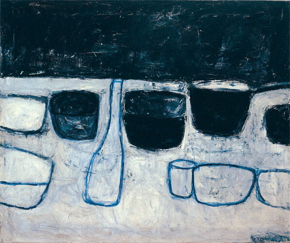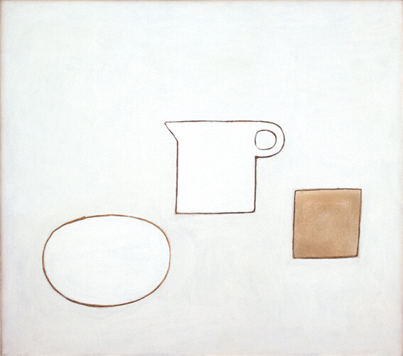 William Scott(1913-1989) 은 정물화와 추상화로 유명한 영국 화가입니다. 자신의 작품을 보는 관객에게 구체적인 이미지가 각인되어야 한다라는 개념을 가지고 있는 화가였습니다. 1950년대부터 1970년대 초반까지 그의 작품활동 기간동안 특별할 것 없는 주방도구, 그릇 용품등 주방에서 볼 수 있는 도구들로 주방용품의 그림 하면 자신이 기억되는 것을 의도했으며 실제로 그렇게 되었습니다. 1970년대에는 군더더기를 뺀 형식을 취했으며 주제와 표현방식을 매우 절제된 구성으로 바뀌었습니다. 컵의 둥근 손잡이와 길고 가늘고 지팡이와 같은 팬 손잡이로 표현된 그의 미술의 도구로 당시 주방도구 및 용품을 작품소재로 계속해왔던 화가가 드물었기때문에 대중화되지 않았던 시장을 개척하면서 명성이 높아졌으며 1959년 추상화가 마크 로스코의 방문으로 화제가 되었습니다.