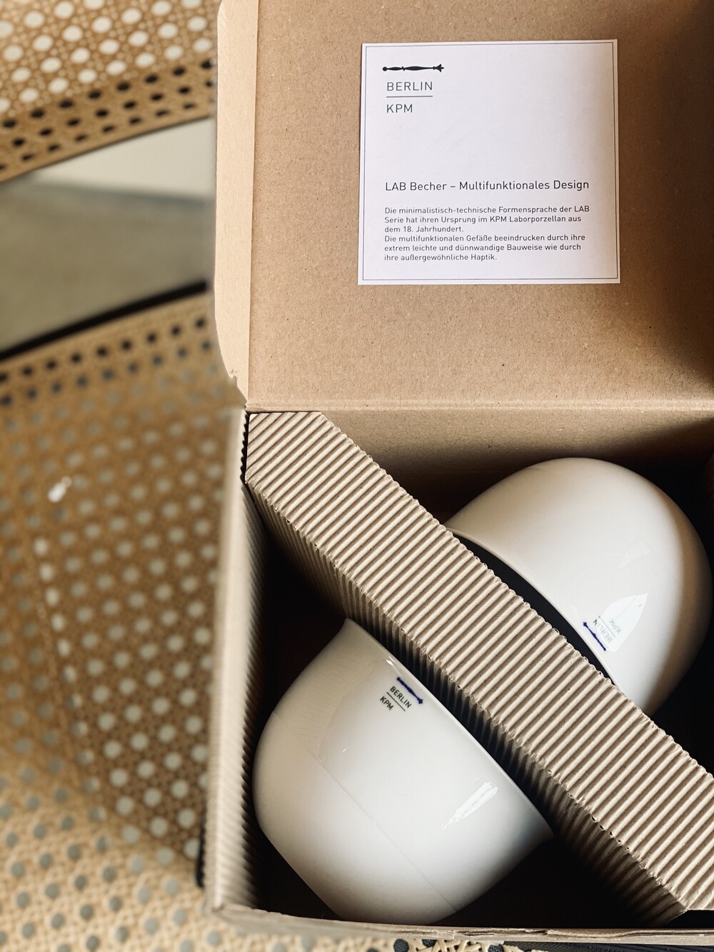 LAB 컵은 디자인 시리즈의 새로운 만능 제품으로 컵 셋트 No.2B는 두 개의 질감으로 더욱 더 디자인적인 요소를 갖추고 있습니다. 350ml의 용량이 담기는 사이즈로 낮고 넓은 디자인이며 특히 라떼 종류가 담기 좋은 디자인입니다. 가볍고 얇은 두께감으로 사용감이 좋은 제품입니다. LAB 컵 시리즈는 컵으로의 용도 뿐만 아니라 꽃병 또는 다기능 저장용기로도 활용이 가능합니다. LAB 시리즈는 새로운 KPM Berlin의 현대디자인으로 클래식 디자인들과 조화로움을 보여주며 나아갑니다.