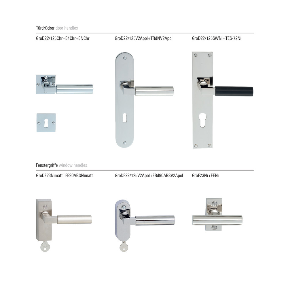 TECNOLUMEN은 라이센스를 가지고 1983년 부터 다양한 Gropius 핸들을 생산하고 있습니다.